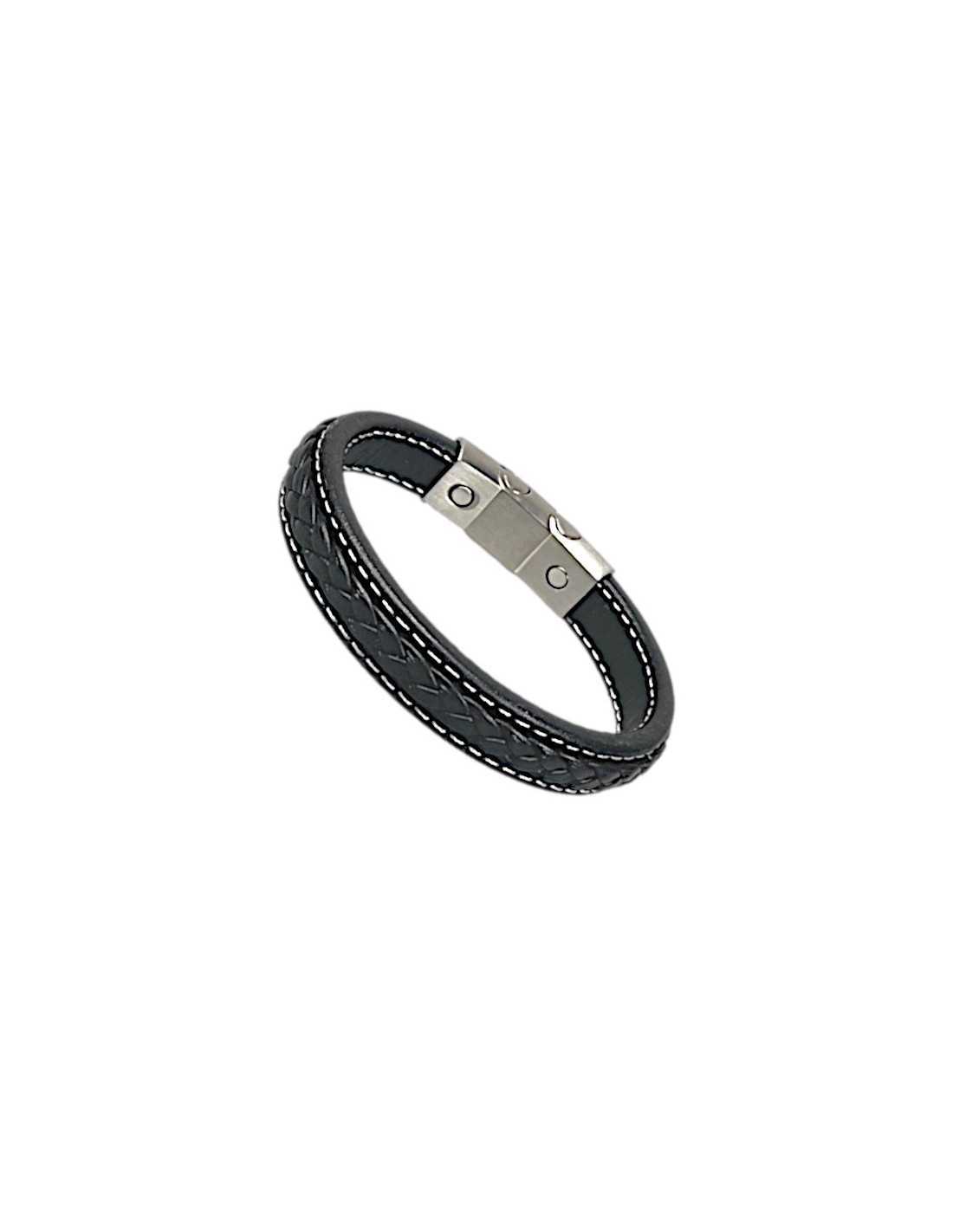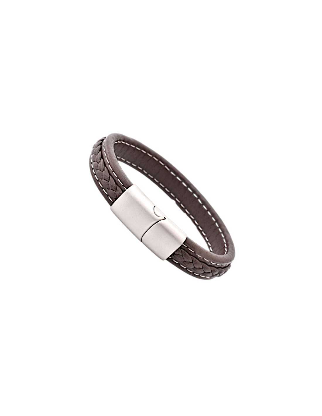 I-Energy power V9B Magnetarmbånd i kraftig ægte mørk Brun læder læder flet med hvid syning. Armbåndet er 10mm bredt og i standart længen 18,5cm uden ekstra låse led.