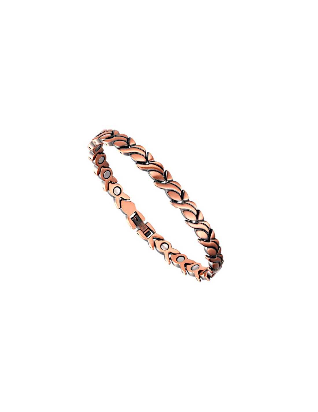 Flot Smalt kobberarmbånd/ankelkæde med snoede led CB007 er 7mm bredt og har i standart længden 22cm 19 kraftige 3000gauss neodyme magneter.